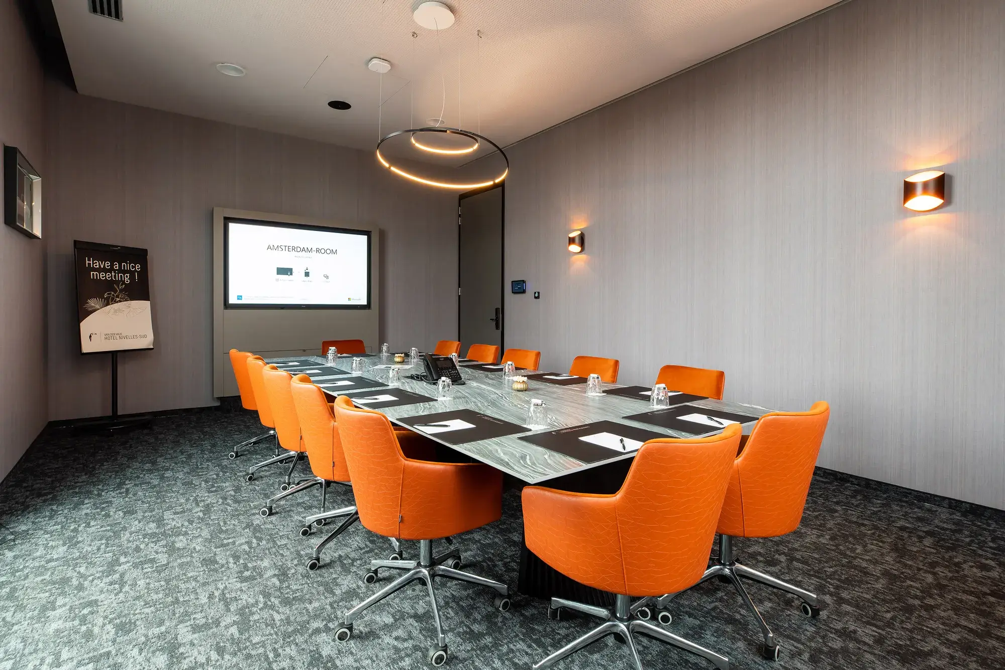 Les salles de séminaire du Van der Valk Hotel Nivelles-Sud sont conçues pour des sessions de travail prolongées et des formations intensives. Elles sont lumineuses, modulables et entièrement équipées pour votre confort : Wi-Fi haut débit, vidéoprojecteurs, paperboards, sonorisation professionnelle, etc. Un cadre idéal pour favoriser la concentration et la créativité de vos équipes.